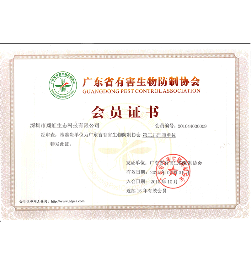 深圳市翔虹生態(tài)科技有限公司成立于1995年,是深圳最早成立的專(zhuān)業(yè)蟲(chóng)害防治公司之一。公司發(fā)展至今獲得全國(guó)有害生物防制服務(wù)A級(jí)資質(zhì)、廣東省有害生物防制服務(wù)A級(jí)資質(zhì)、深圳市有害生物防制服務(wù)A級(jí)資質(zhì)、廣東省有害生物防制服務(wù)A級(jí)資質(zhì)、深圳市有害生物防制服務(wù)甲級(jí)資質(zhì)的單位,是中國(guó)有害生物防治協(xié)會(huì)會(huì)員、廣東省有害生物防治協(xié)會(huì)會(huì)員、深圳市有害生物防治協(xié)會(huì)理事單位,多次獲得“深圳市十佳消殺單位”榮譽(yù)。